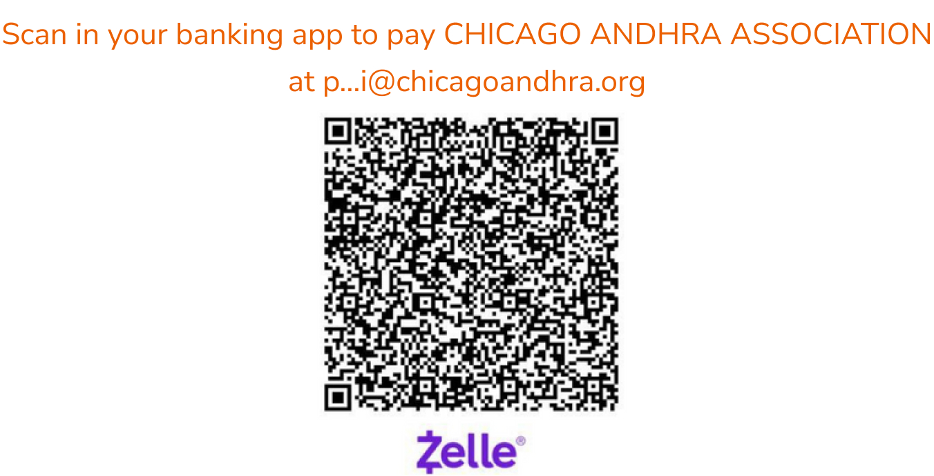 Please send payments to: treasurer@chicagoandhra.org via QuickPay / Zelle and Include as the reference number in the payment memo.